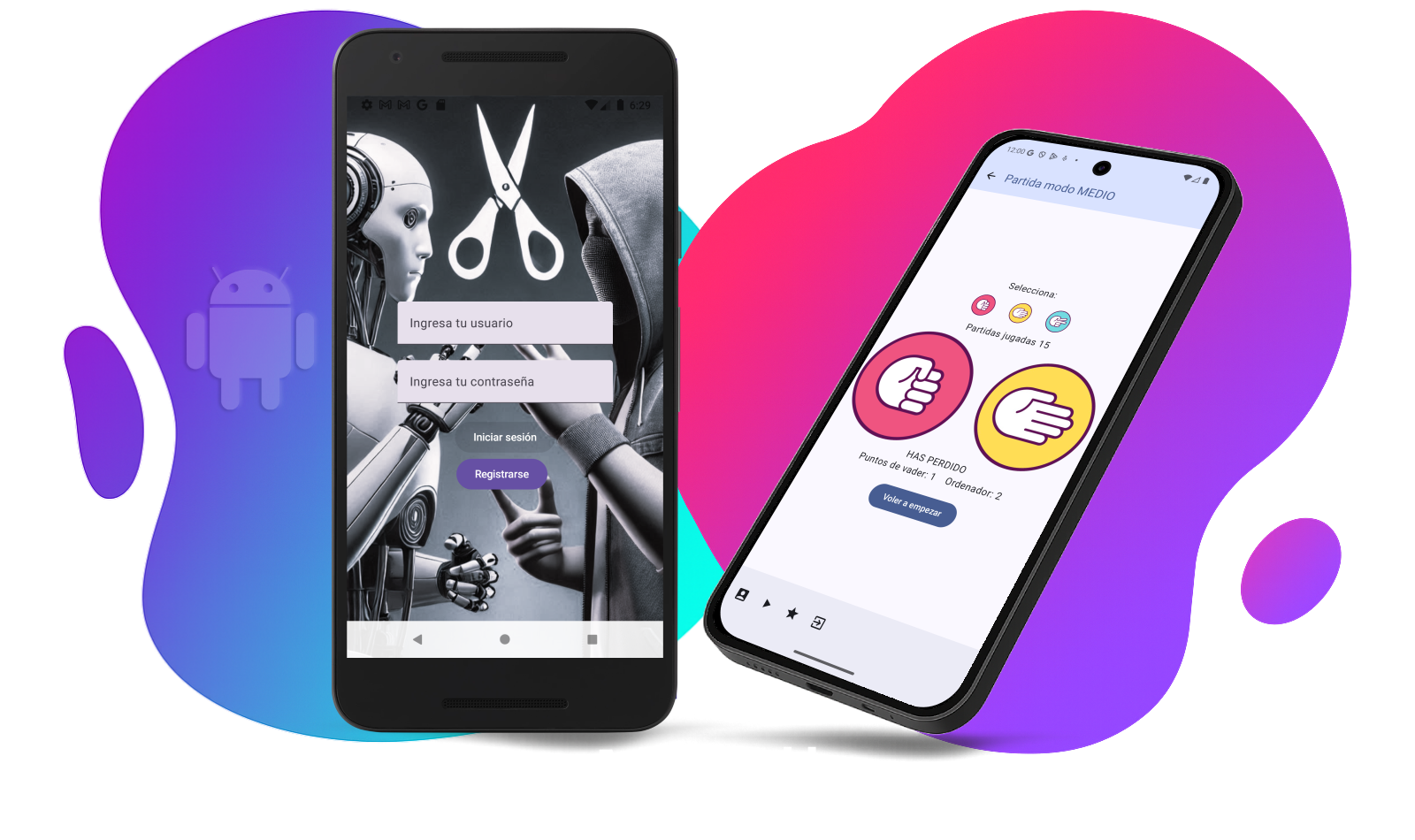 Aplicación de Piedra-Papel-Tijera Permite jugar partidas contra la máquina usando probabilid que se pueden ajustar con 3 niveles de dificultad. También permite llevar un registros de todas las partidas (ganadas – perdidas)