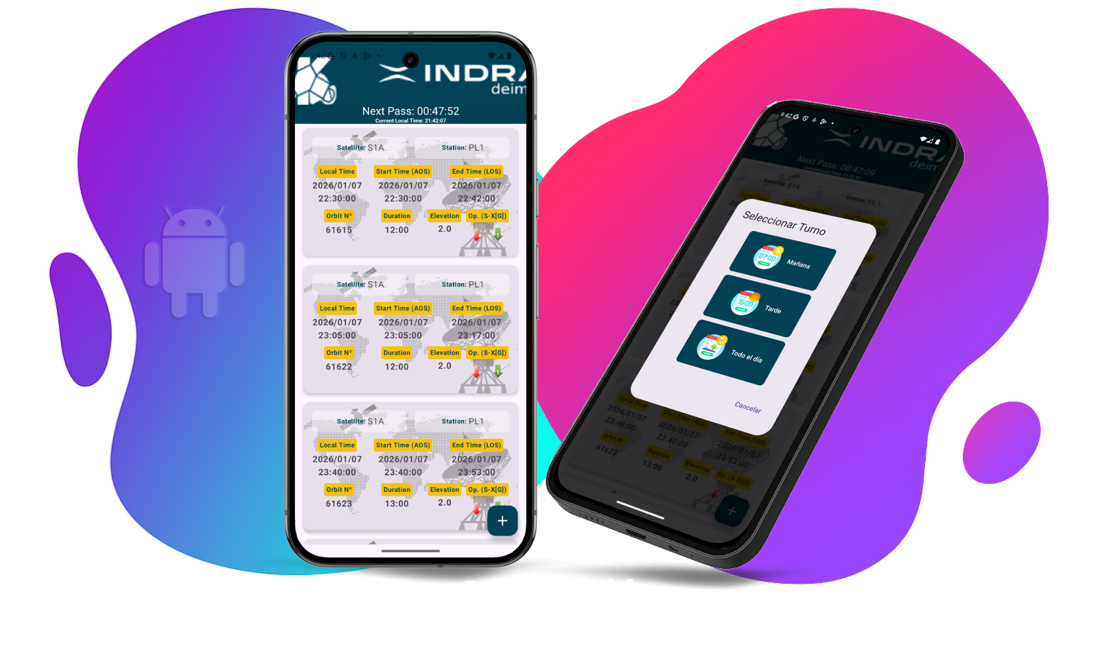 Aplicación de visualización de Paso de Satélites. Permite subir un fichero .xml donde se encuentra la información de los pases y los muestra con en una LazyColumn, y permite establer 3 alarmas preventivas de cada satélite.